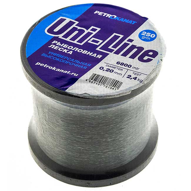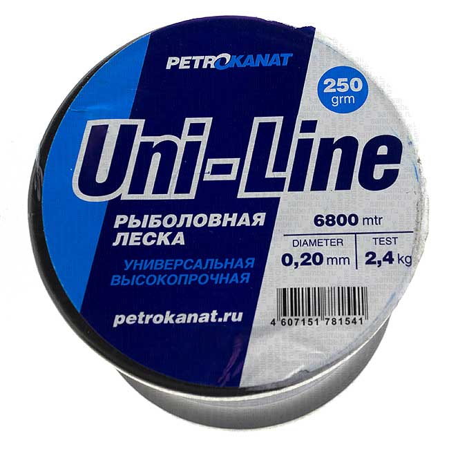 Леска рыболовная UniLine; 0,20 мм; тест 2,4 кг; вес 250 гр. длина - 6800 м., от: Петроканат